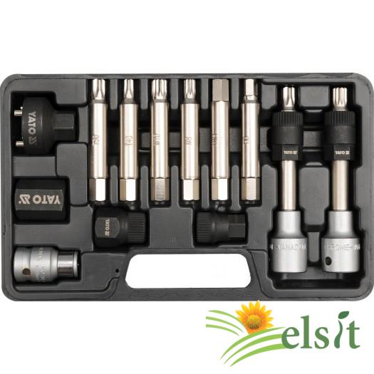 Cheie 1/2 ": Torx T50(tip Bosch), L = 110 mm Cheie 1/2": SPLINE (XZN) M10(tip Bosch), L = 110 mm Bit 6 puncte: Torx T40, L = 75 mm Bit 6 puncte: Torx T50, L = 75 mm Bit 6 puncte: SPLINE (XZM) M8 L = 75 mm Bit 6 puncte: SPLINE (XZM) M10, L = 75 mm Bit 6 puncte: HEW 8 mm, L = 75 mm Bit 6 puncte: HEX 10 mm, L = 75 mm soclu 6 puncte spline 15 mm x 33 din?i (Porsche) capac 6 puncte caneluri 22 mm x 33 din?i (Mercedes) Cap ax 6 puncte 17 mm x 4 prezoane (Tip Magneti Marelli) capac 6 puncte 22 mm (Renault, Volvo) Adaptor pentru biti 1/2 "x 10 mm