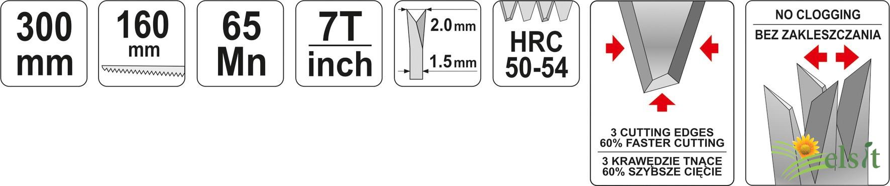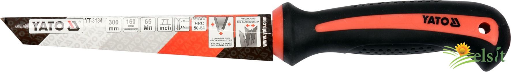 Lama scurtă de fierăstrău și forma de cuțit ascuțit permit ca ferăstrăul să fie utilizat pentru taierea de gips-carton. Lama de ferăstrău este din oțel de mangan, simbol Mn65, rezistent la abraziune și deformare. Dinții dințate cu un profil special pe trei fețe sunt adaptate pentru tăierea agresivă în ambele direcții si sunt întăriți pentru o rezistenta de 50-54 HRC.