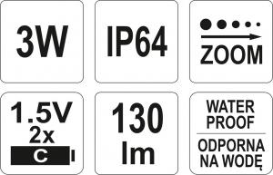 YT-08577 LANTERNA LED 3W, FUNCTIE ZOOM - 130LM