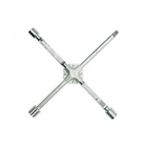 Cheie de roți in cruce, realizata din oțel de înaltă calitate, crom-vanadiu. Are 4 brațe cu tubulare potrivite pentru toate tipurile de șuruburi si prezoane folosite la autoturisme și camioane ușoare. Imbinarea bratelor a fost intarita cu tablă de oțel dublu nituita, crescand siguranța și confortul utilizării.